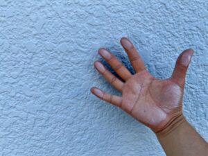 外壁が古くなると、手で触ったときに白い粉がつく「チョーキング現象」が起こりますよね。これは、発生したラジカルが塗料の主成分である樹脂をバラバラに分解してしまうために起こる現象です。