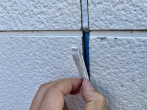本来のコーキング材は、指で押すと弾力のある柔らかさがあります。ところが、劣化が進むとカチカチに固まり、まるでプラスチックのような状態に。こうなると伸縮性がなくなり、ひび割れのリスクも高まります。